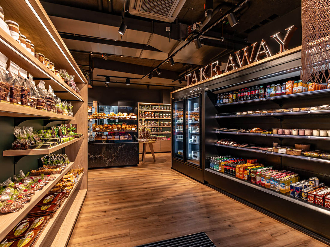 – Herausragendes Ladenbau-Design mit Naturstein-Thekenanlage